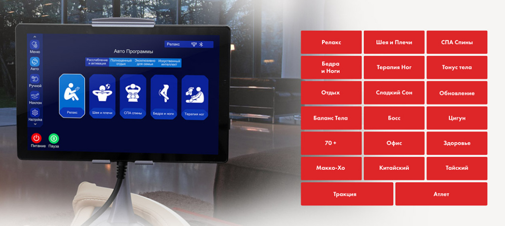 - Голосовое управление массажными программами