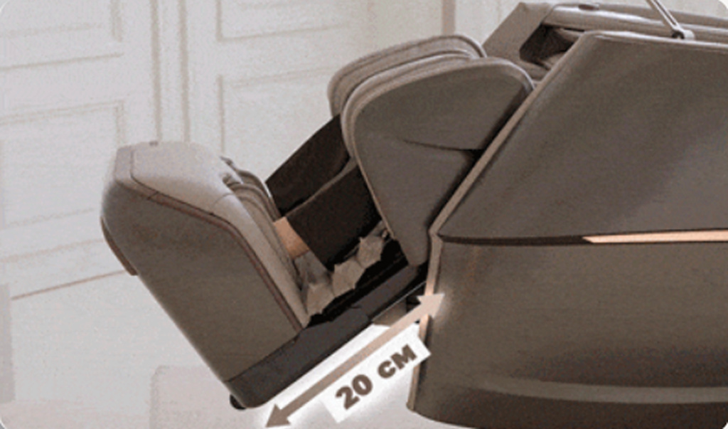 Технология ZERO WALL+ минимизирует необходимое пространство за счет компактной конструкции откидывания, что позволяет устанавливать массажное кресло вплотную к стене (до 5 см).